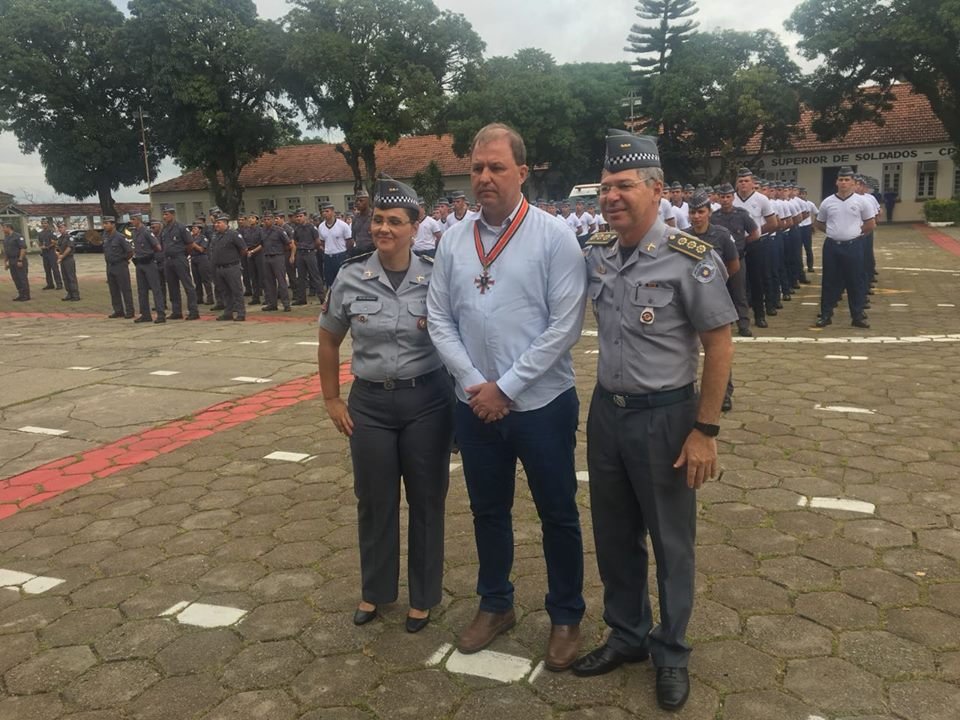 Pardini recebeu a comenda das mãos do Coronel Antônio Valdir Gonçalves Filho, comandante do CPI-7.