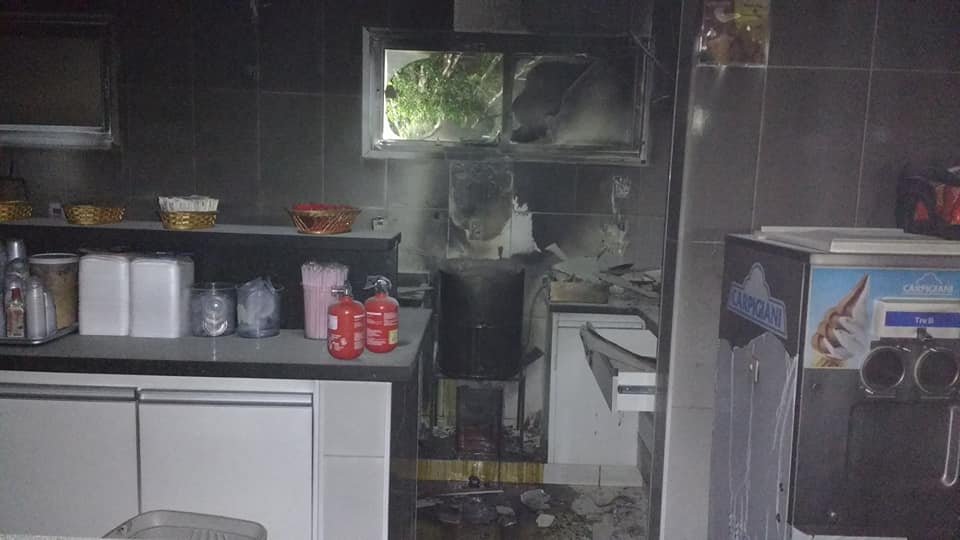 O fato ocorreu por volta das 19 horas quando o foco de fogo originou na cozinha do estabelecimento