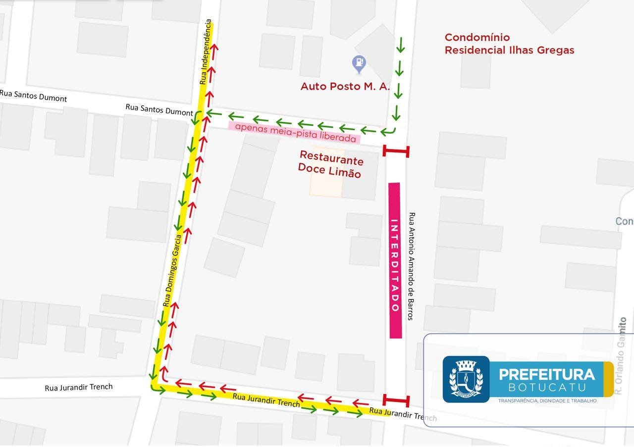 Os motoristas que transitam pela Rua Antônio Amando de Barros, sentido Asilo-Vila Jardim, desviarão pela Rua Santos Dumont e seguirão pela Rua Domingos Garcia até a Jurandir Trench, quando retornarão a Antônio Amando de Barros. No sentido oposto, Vila Jardim-Asilo, o motorista que transitam pela Rua Antônio Amando de Barros deve desviar pela Rua Jurandir Trench e depois Rua Domingos Garcia, conforme o mapa abaixo.