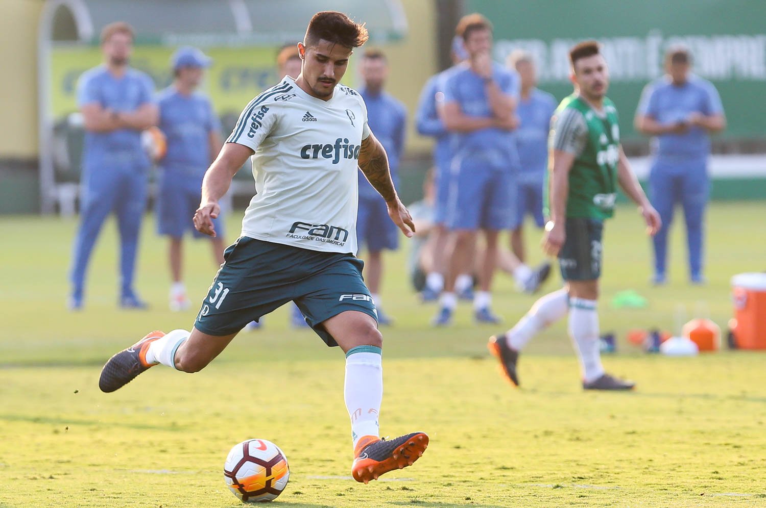 O jogador Thiago Martins, da SE Palmeiras, durante treinamento, na Academia de Futebol.