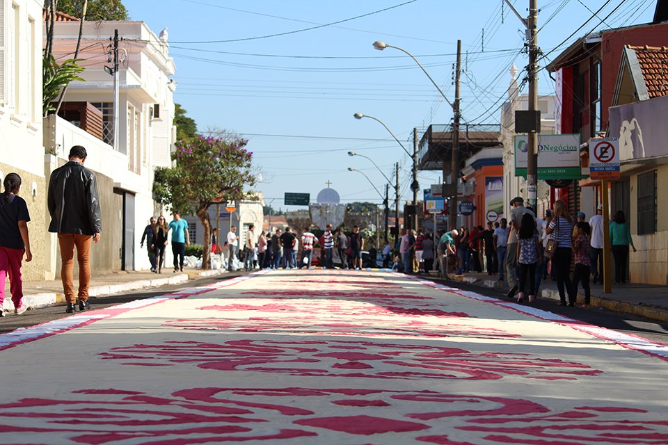 Neste ano, os são onze tapetes, cinco passadeiras e dois palcos começaram a ser feitos às 5h. As entidades responsáveis são, em maioria, escolas da rede pública e privada, as paróquias e diretorias do município. A celebração tem como tema “Por Cristo, com Cristo e em Cristo somos todos irmãos”.