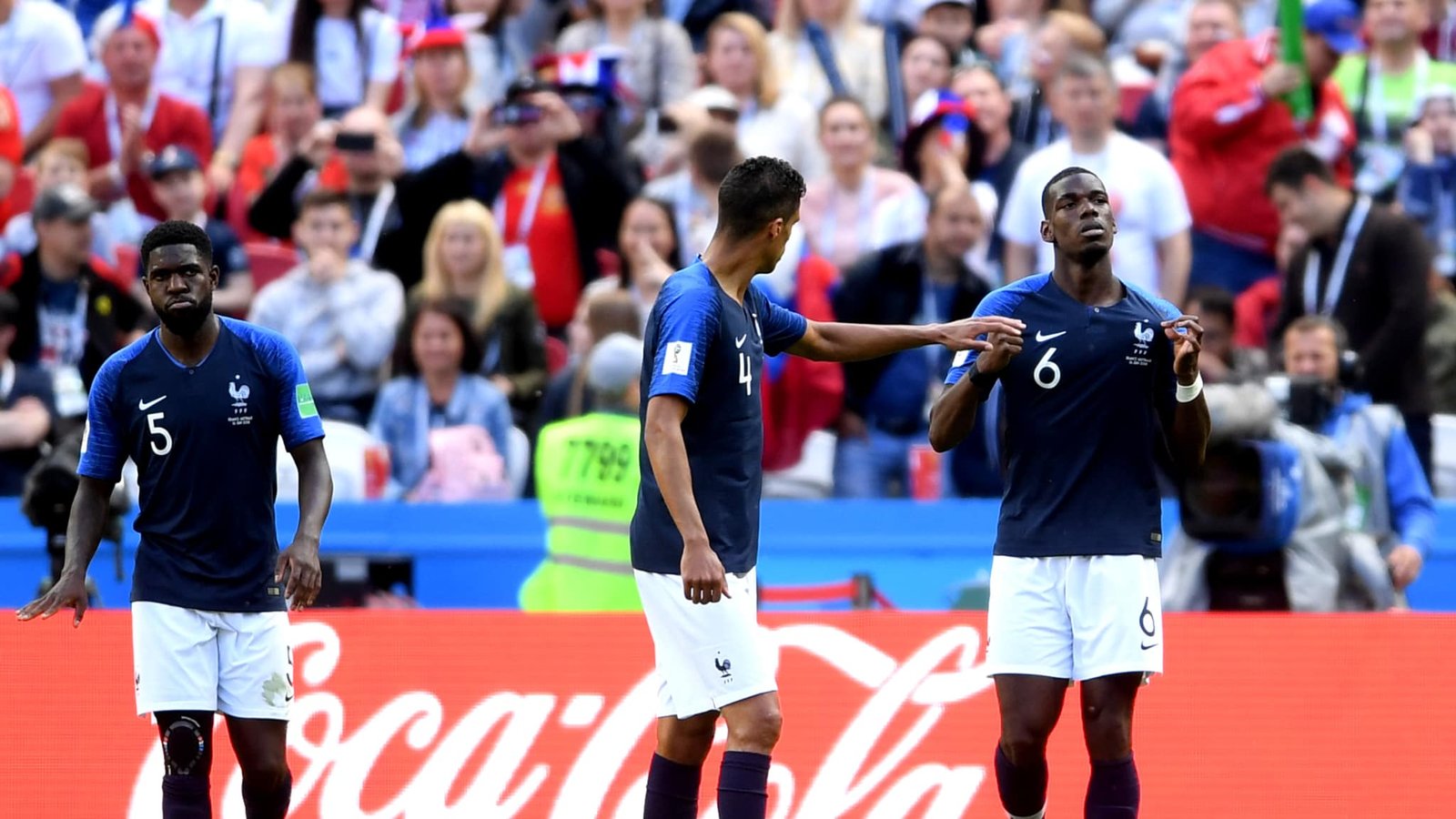 Justamente quando a Austrália melhorava no jogo que a França fez o segundo gol. Após uma boa tabela no ataque, Pogba chutou para o gol, dividindo com o zagueiro. A bola encobriu Ryan, tocou o travessão e caiu apenas 1 centímetro atrás da linha.