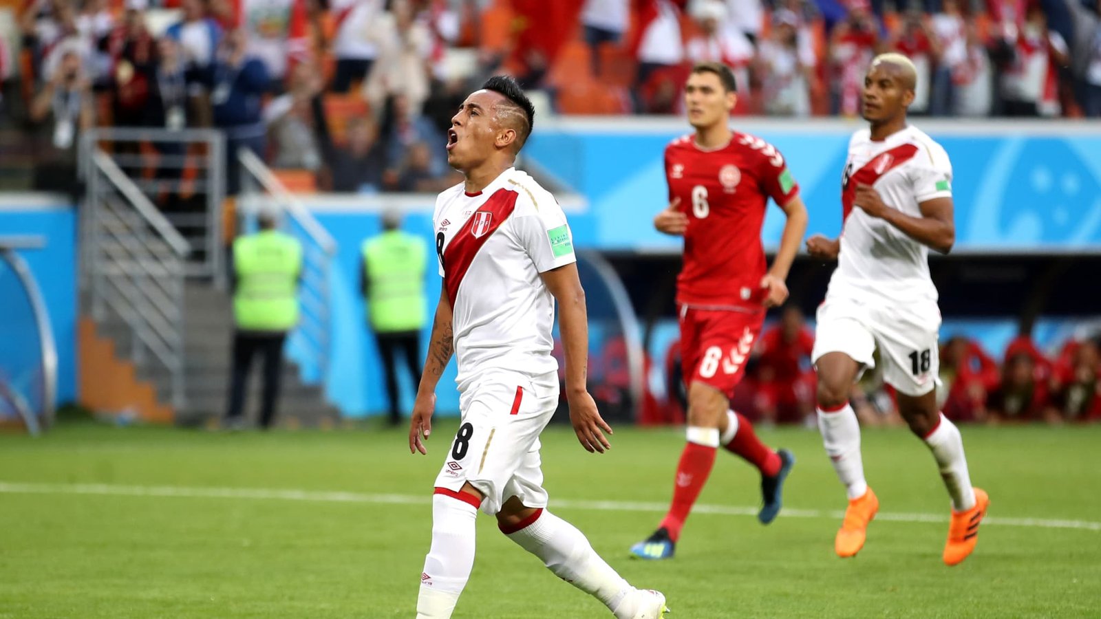 Com o gol da Dinamarca, o treinador peruano decide fazer mudanças na equipe. Na mais aguardada delas, ele tira Edison Flores e coloca Paolo Guerrero. A entrada do craque peruano, que quase ficou fora da Copa por causa de uma punição por doping, melhorou um pouco o desempenho do ataque. O time chegou a ter várias chances de gols, mas sem sucesso.