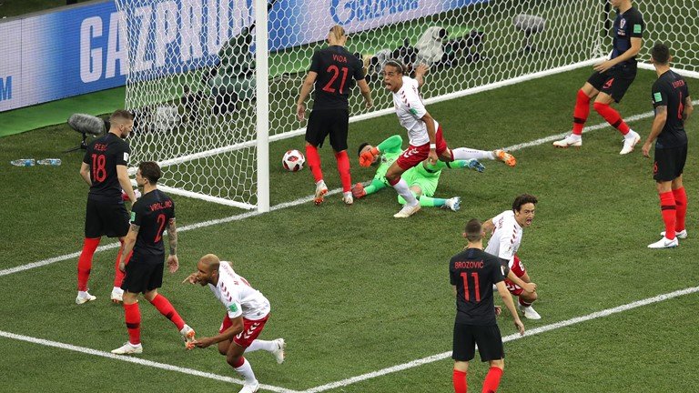 As seleções da Croácia e Dinamarca tiveram de ir para a prorrogação, após empate em 1 a 1 no tempo normal da partida, na segunda prorrogação na Copa para decidir a classificação para a fase de quartas de final. O empate, no entanto, permaneceu no placar e foi preciso a cobrança de pênalti.