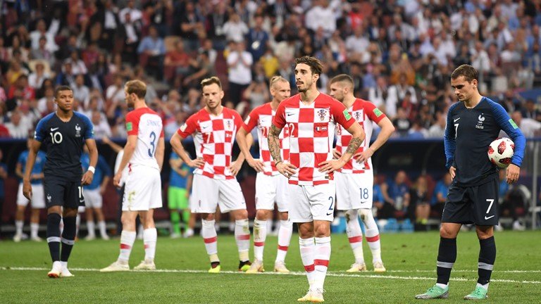 A Croácia saía atrás no placar novamente. O time do técnico Zlatko Dalic teve que correr atrás do prejuízo nas partidas de oitavas, quartas de final e semifinal. E como nessas partidas, buscou o empate. Aos 27 minutos, Perisic recebeu na entrada da área, após cruzamento de Modric, e acertou um belo chute cruzado no canto de Lloris.