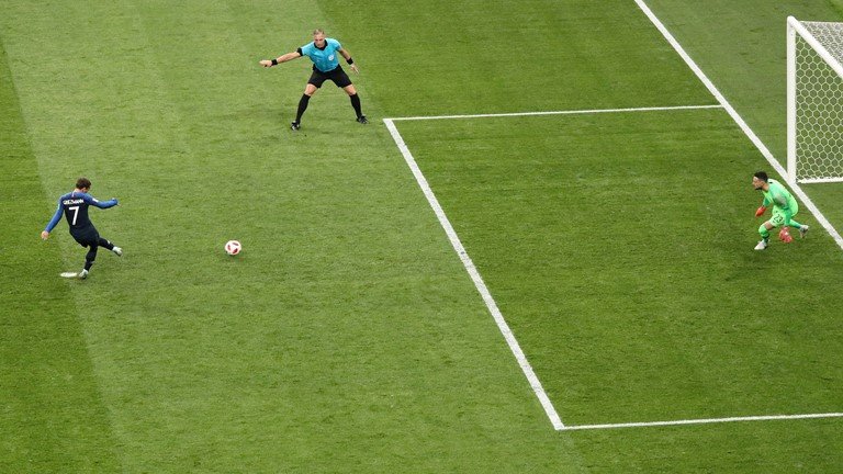 Mas a França chegou ao segundo gol, com auxílio do VAR. Perisic cortou um cruzamento com o braço. Os franceses reclamaram, o árbitro argentino Néstor Pitana foi rever o lance no vídeo e marcou o pênalti.
