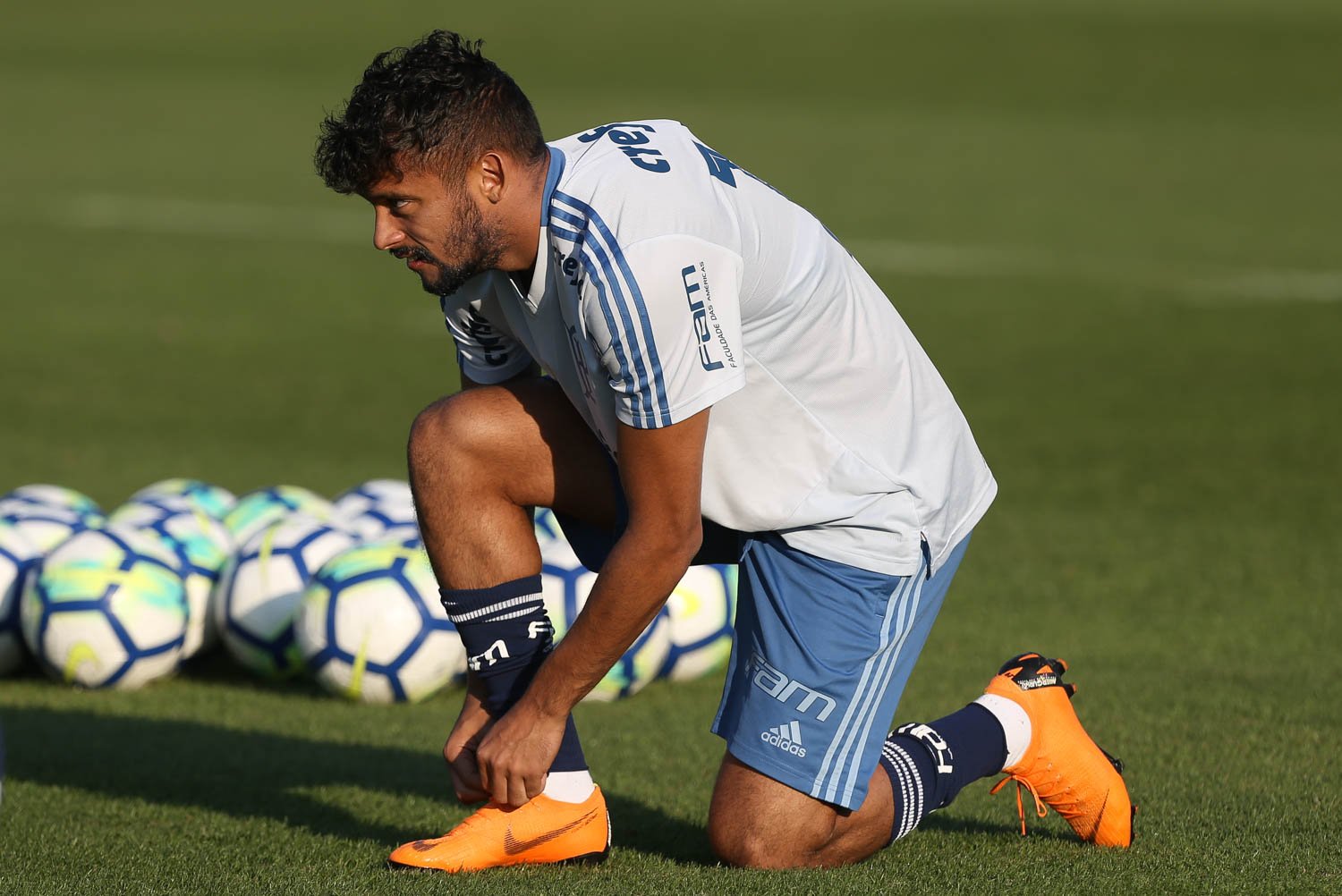 O jogador Gustavo Scarpa, da SE Palmeiras, durante treinamento, na Academia de Futebol.