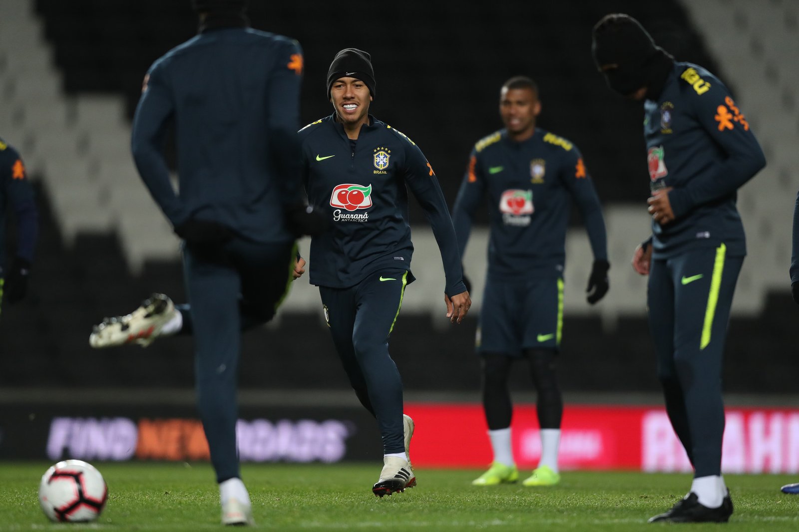 O técnico Tite comandou no MK Stadium, em Milton Keynes, na Inglaterra, local do jogo desta terça-feira, um trabalho tático com todos os jogadores, entre eles, o atacante Roberto Firmino.