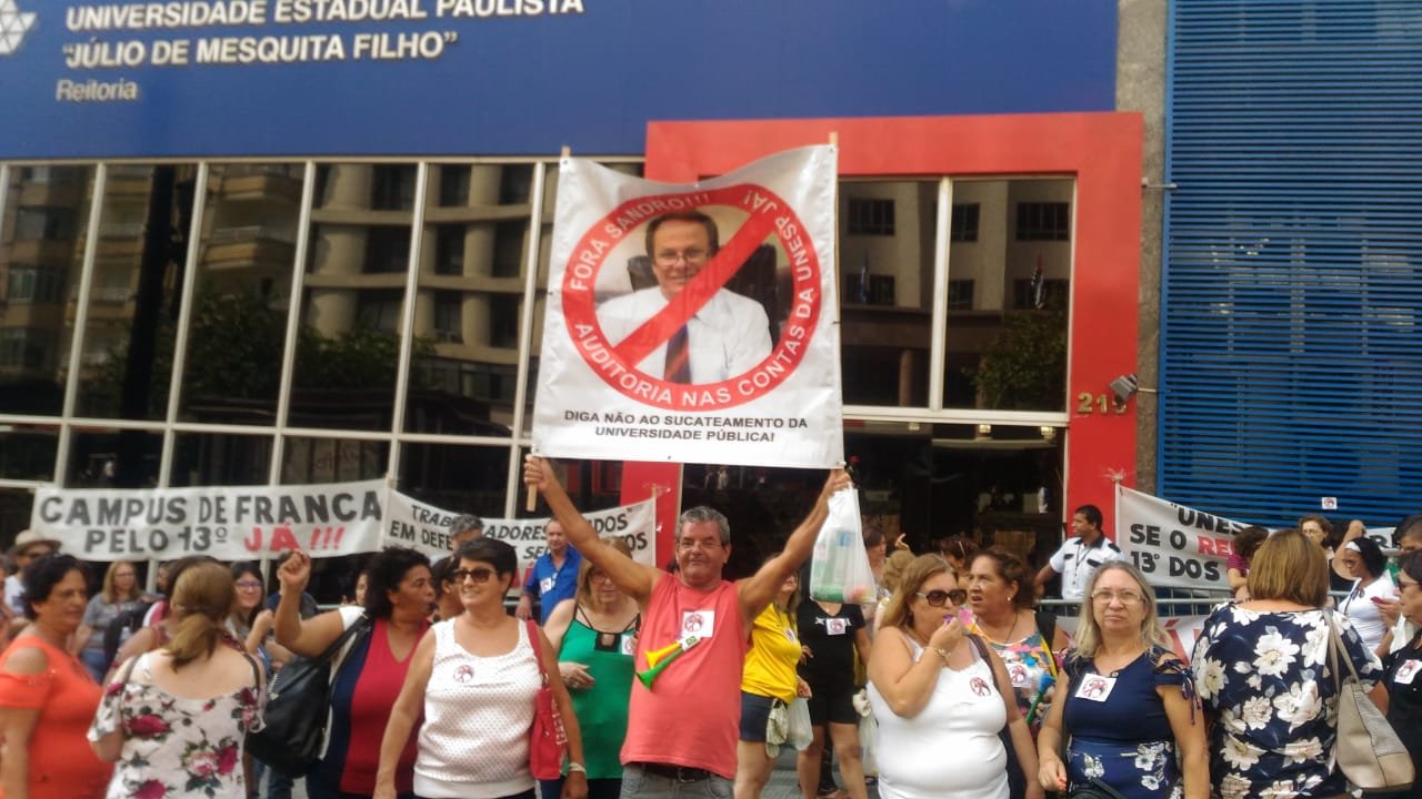 A reunião extraordinária do Conselho Universitário da Unesp foi marcada também por protestos no lado externo ao prédio da reitoria, em São Paulo. Diversos câmpus enviaram caravanas de servidores que protestaram contra a atual administração da instituição.