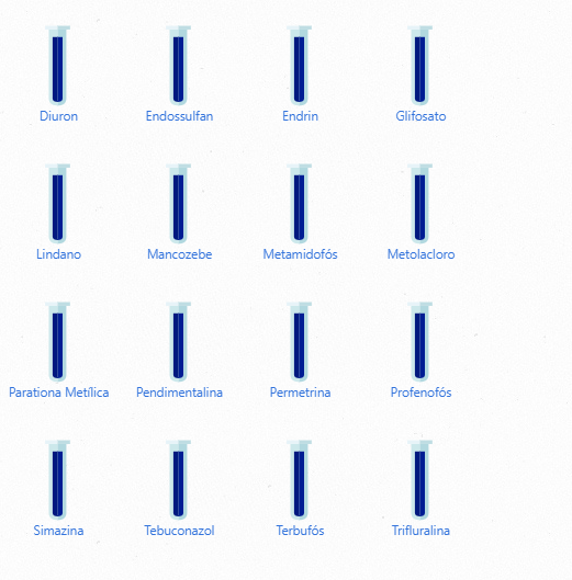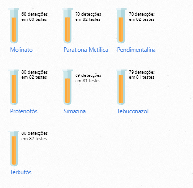 Também foram diagnosticados presenças de agrotóxicos como 2,4 D+2, 4,5T, Aldicarbe, Aldrin, Carbofurano, Clopirifós, Endossulfan, Endrin, Metamidofós, Metolacloro, Molinato, Parationa Metílica, Pendimentalina, Profenofós, Simazina, Tebuconazol e Terbufois.