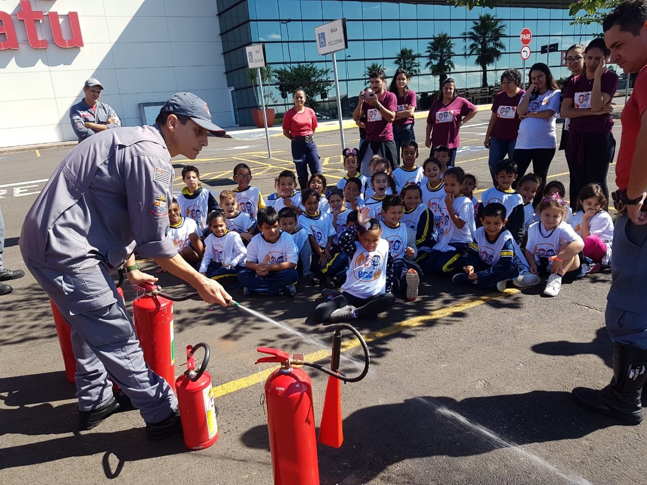 Os alunos também foram orientados de como reconhecer os equipamentos de segurança existentes pelo shopping e como devem proceder em caso de incêndio; conheceram o funcionamento de um hidrante; participaram da demonstração e identificação de cada tipo de extintor e conheceram os equipamentos de segurança utilizados pelo Corpo de Bombeiros em caso de incêndio.