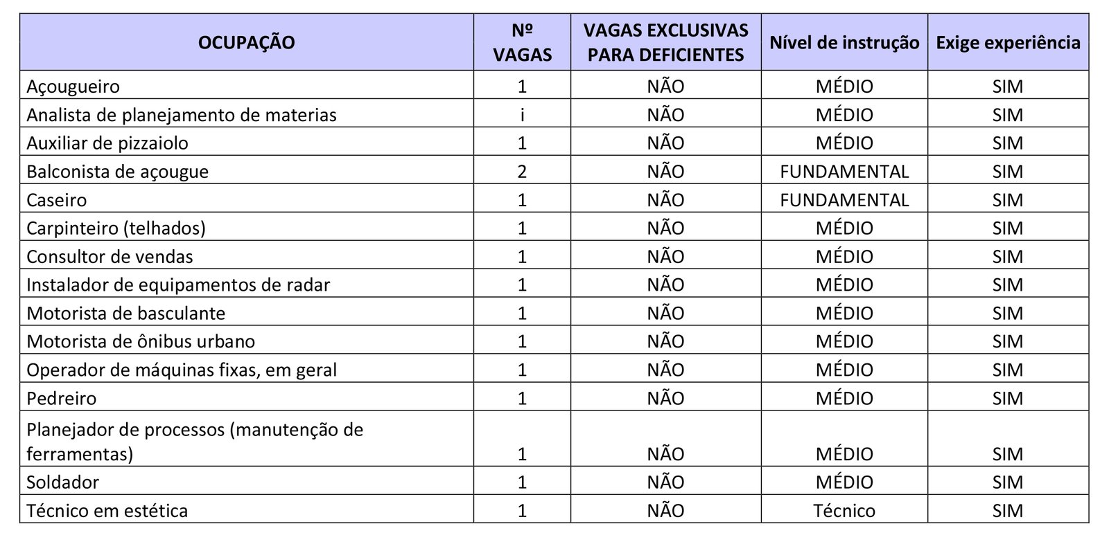 O Posto de Atendimento ao Trabalhador (PAT) divulgou as vagas de emprego para esta semana em Botucatu, nos mais diferentes níveis de escolaridade. Ao todo são dezesseis oportunidades em diversas áreas. As vagas podem ser preenchidas a qualquer momento.