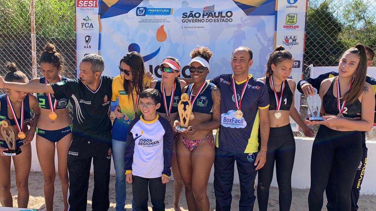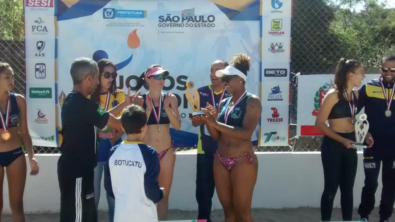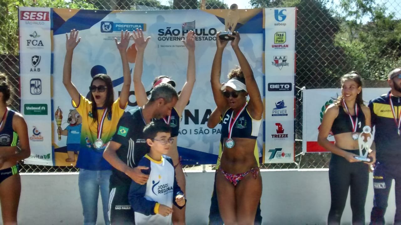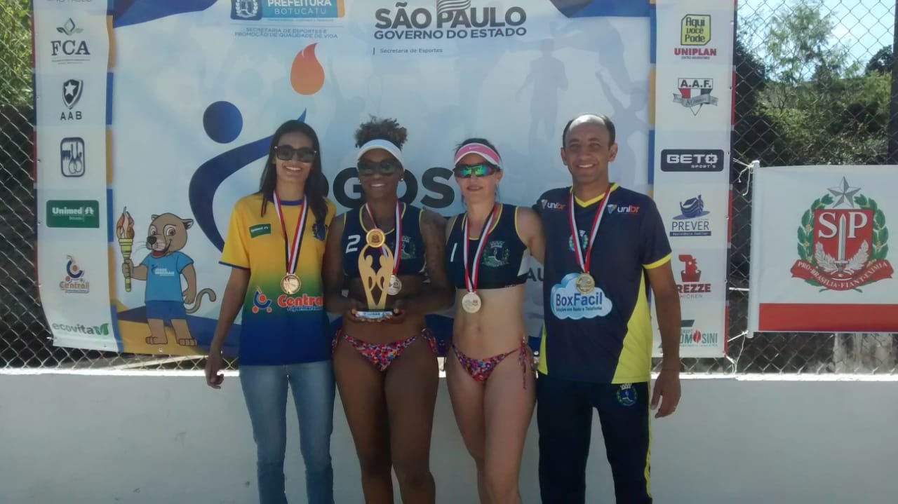 Quem também somou para a classificação geral do Município com uma medalha dourada foi a dupla Kely Folego e Mariana Silva, do Vôlei de Praia. A vitória por 2 sets a 0 veio contra a dupla da cidade de Descalvado, 18×10 e 18×15.
