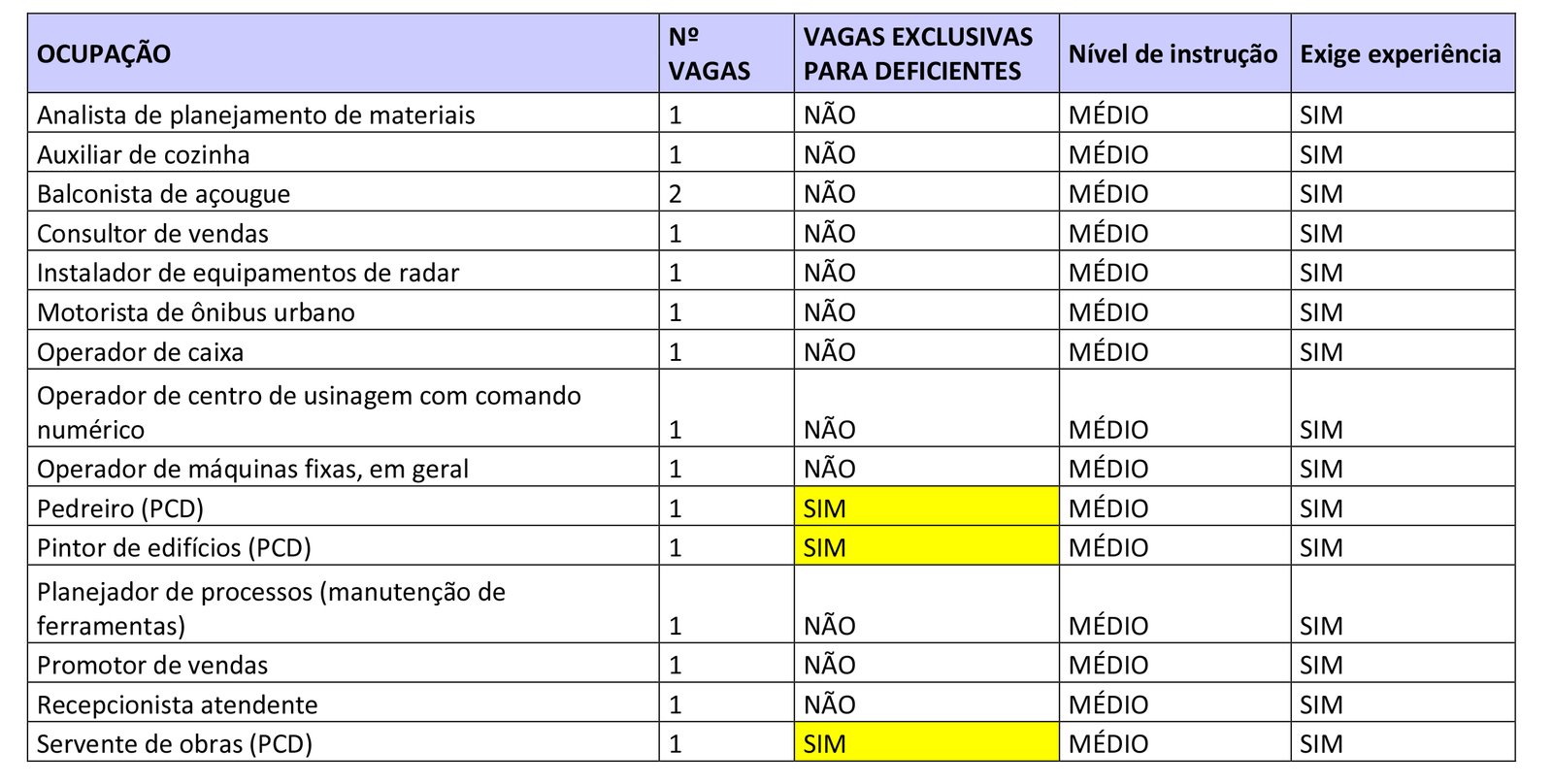 O Posto de Atendimento ao Trabalhador (PAT) divulgou as vagas de emprego para esta semana em Botucatu, nos mais diferentes níveis de escolaridade. Ao todo são dezesseis oportunidades em diversas áreas. As vagas podem ser preenchidas a qualquer momento.