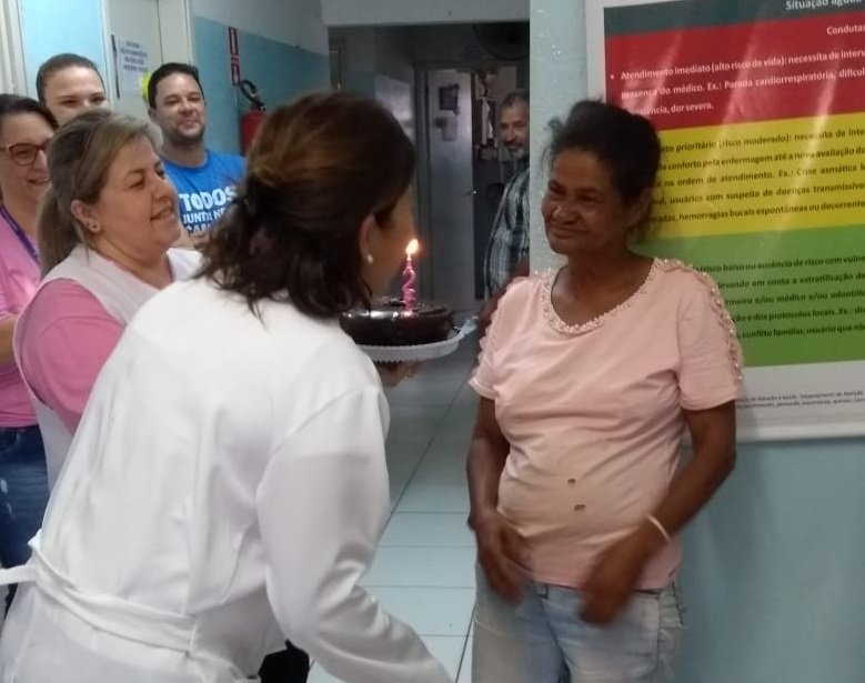 A equipe do PSF que atende os pacientes da vila São Geraldo provocou grande emoção no último dia 13 de setembro a moradora e paciente do posto, Terezinha, que se emocionou, após completar 54 anos de vida e pela primeira vez ter recebido o parabéns e ainda com direito a bolo, presente e ouvir o “parabéns pra você”.