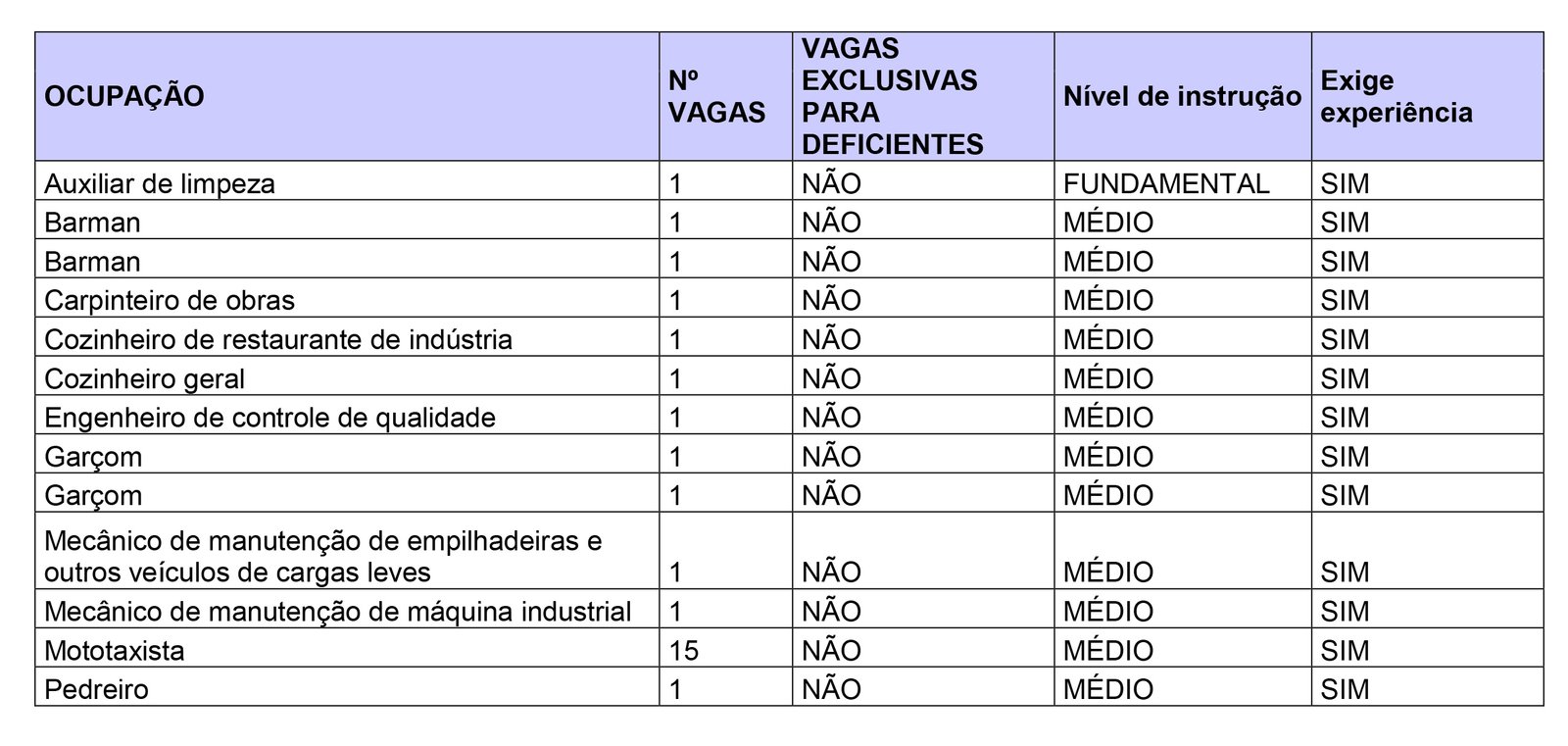 As vagas podem ser preenchidas a qualquer momento