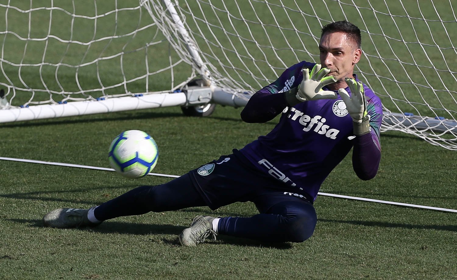 O goleiro Fernando Prass, da SE Palmeiras, durante treinamento, na Academia de Futebol.