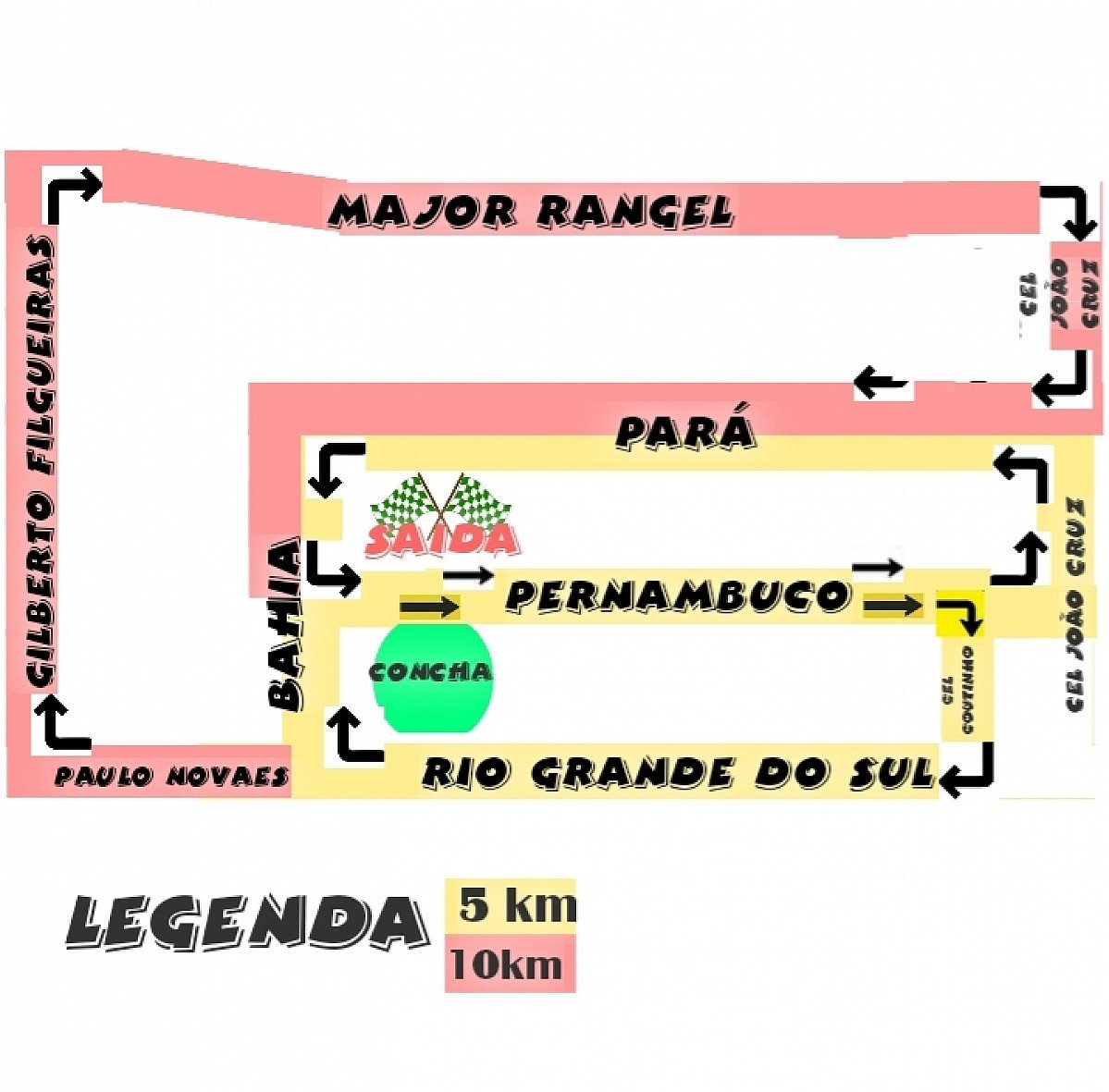 A corrida conta com as categorias 5 km e 10 km. Confira o percurso de cada uma no mapa.