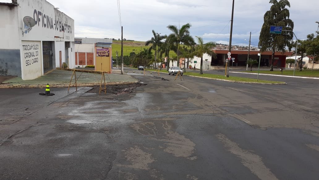 A forte chuva que caiu na última sexta-feira, dia 3, (cerca de 40 milímetros de água em menos de uma hora) causou sérios danos a pavimentação asfáltica e possivelmente as galerias de captação de águas pluviais nas proximidades na avenida Aldo Marini.