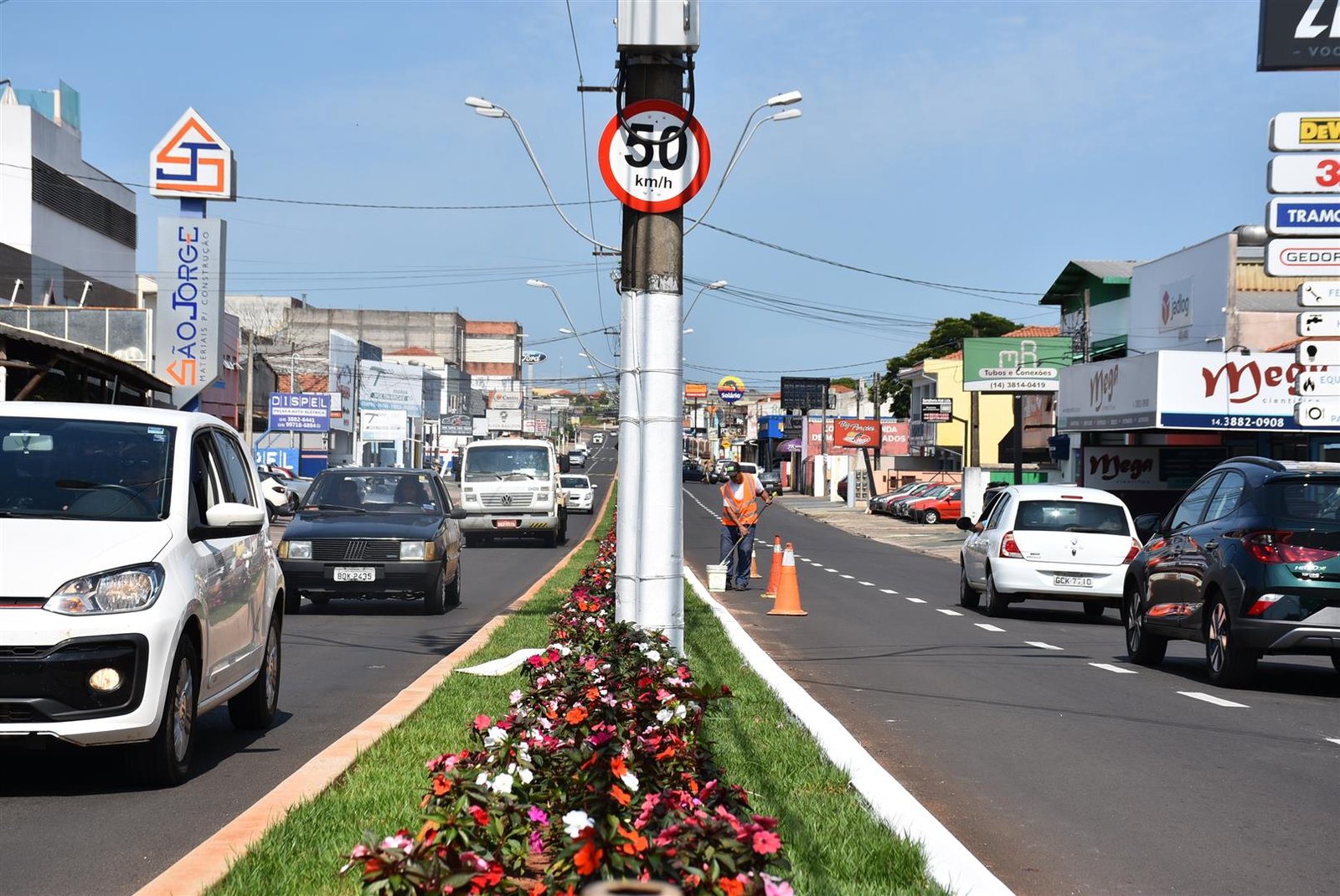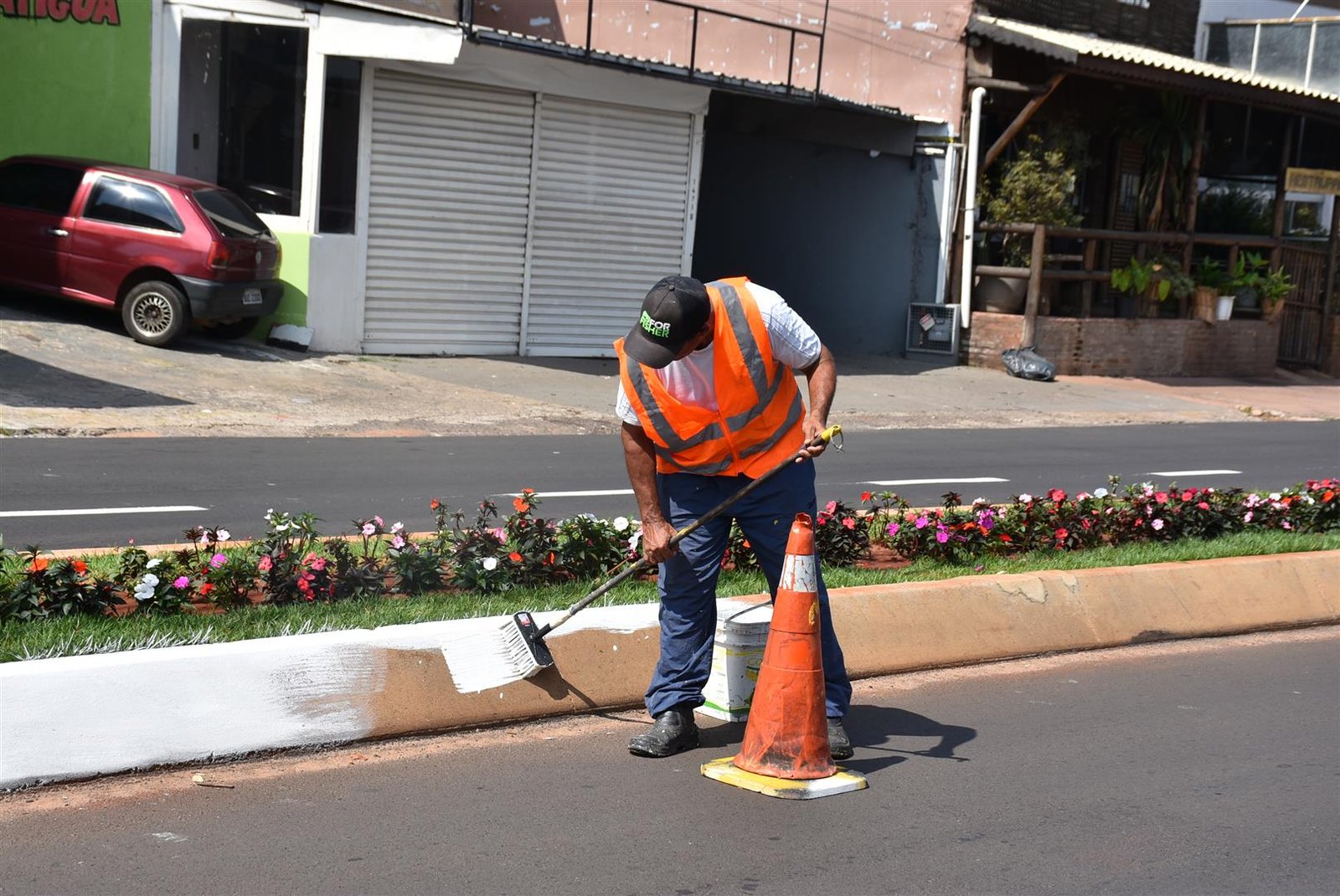 Nova Avenida Dante Delmanto recebe pintura no canteiro central