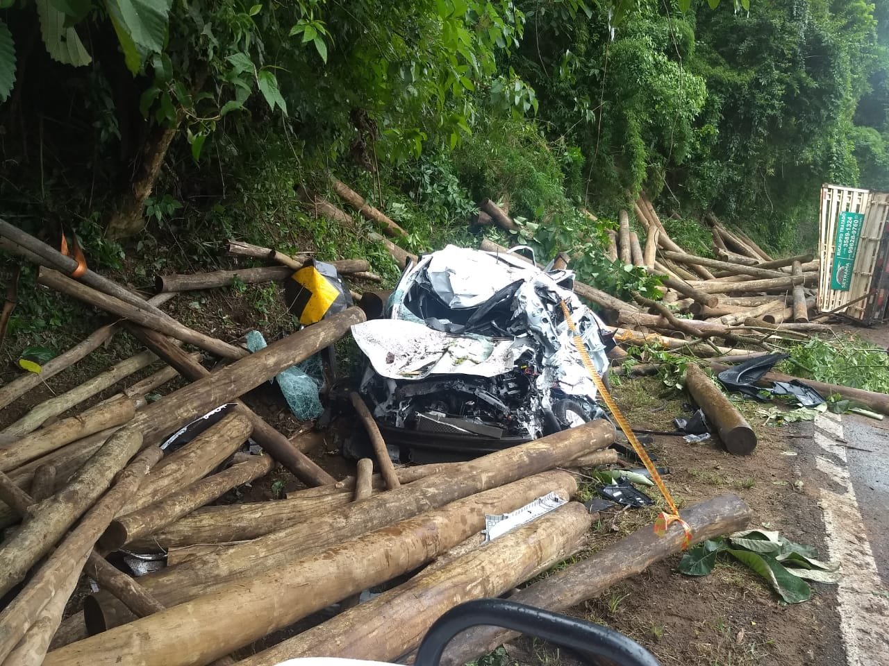 Caminhão tomba na “serra” e atinge carros; acidente deixa duas vítimas fatais