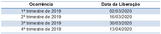 Os valores ficarão à disposição do proprietário no Banco do Brasil durante dois anos e obedecerão ao calendário de restituição de acordo com a tabela abaixo. Após esse prazo a restituição deverá ser solicitada na Secretaria da Fazenda e Planejamento. O contribuinte que estiver inadimplente não poderá resgatar o valor enquanto houver a pendência, como, por exemplo, débitos de IPVA de outro veículo de sua propriedade.