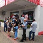 Neste último, apenas doze clientes podem ser atendidos por vez, conforme determinação da matriz. O fato causou filas e aglomerações de pessoas na parte externa das agências, situação não recomendada pela Organização Mundial da Saúde (OMS). Já era possível ver pessoas com o uso de máscaras.