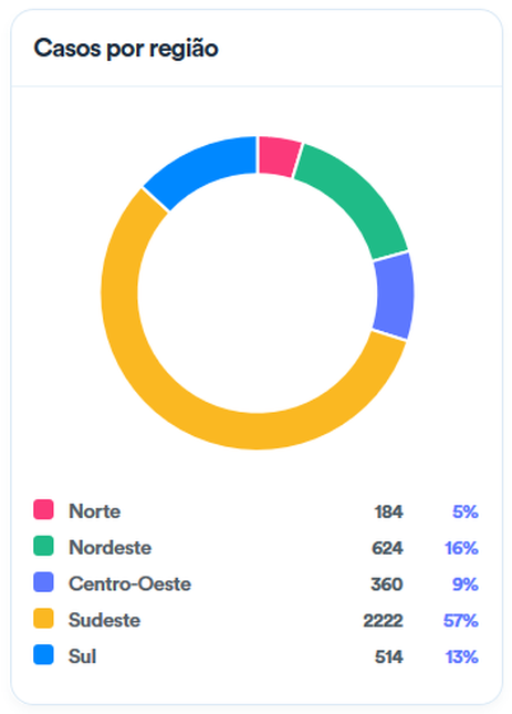 São Paulo é o estado com maior número de infecções comprovadas, com 1.406 casos e 84 óbitos