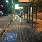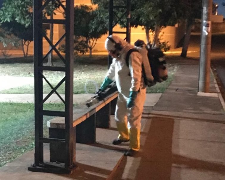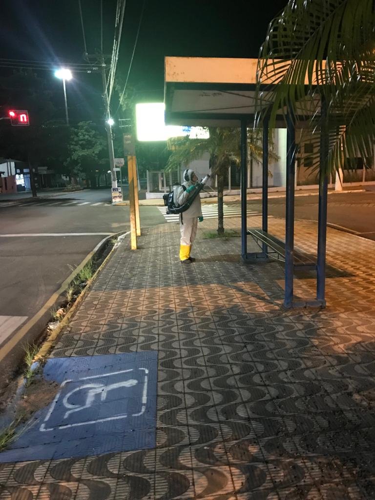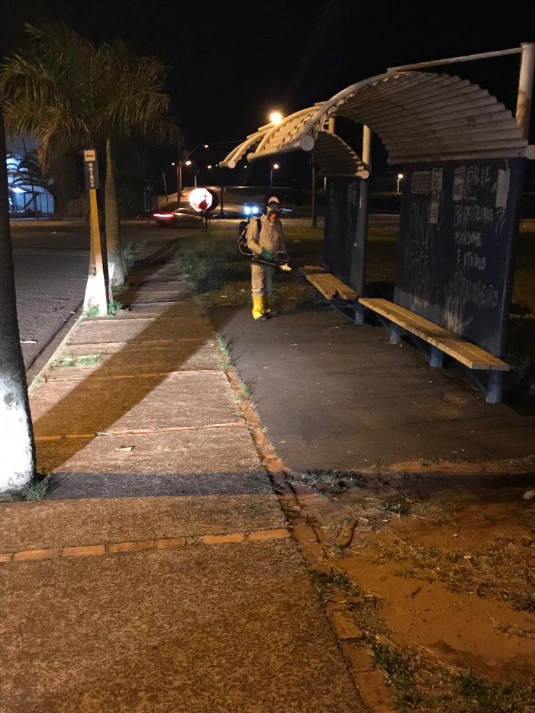 Na noite da última segunda-feira, 30, os pontos de ônibus do transporte coletivo passaram pelo processo de desinfecção.