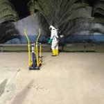Essa higienização que está sendo feita com uso de máquinas costais e pulverizadoras com o auxílio de caminhões pipas, que pulverizam e lavam os locais usando hipoclorito ativo.