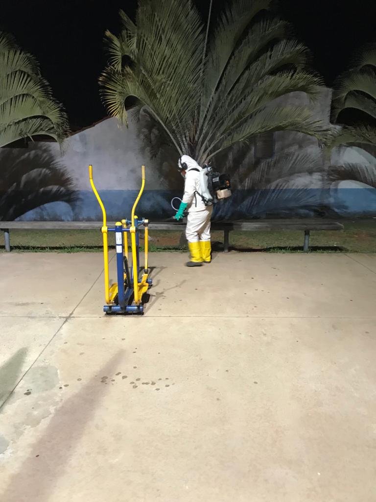 A desinfecção foi iniciada no último dia 24, pelo pátio do hospital Casa Pia São Vicente de Paulo e se estendeu as Unidades de Saúde, CSII (Postão), Dr. Raphael Lhamas Franco e Padre Antonio Puton, nas Cohabs I e II.