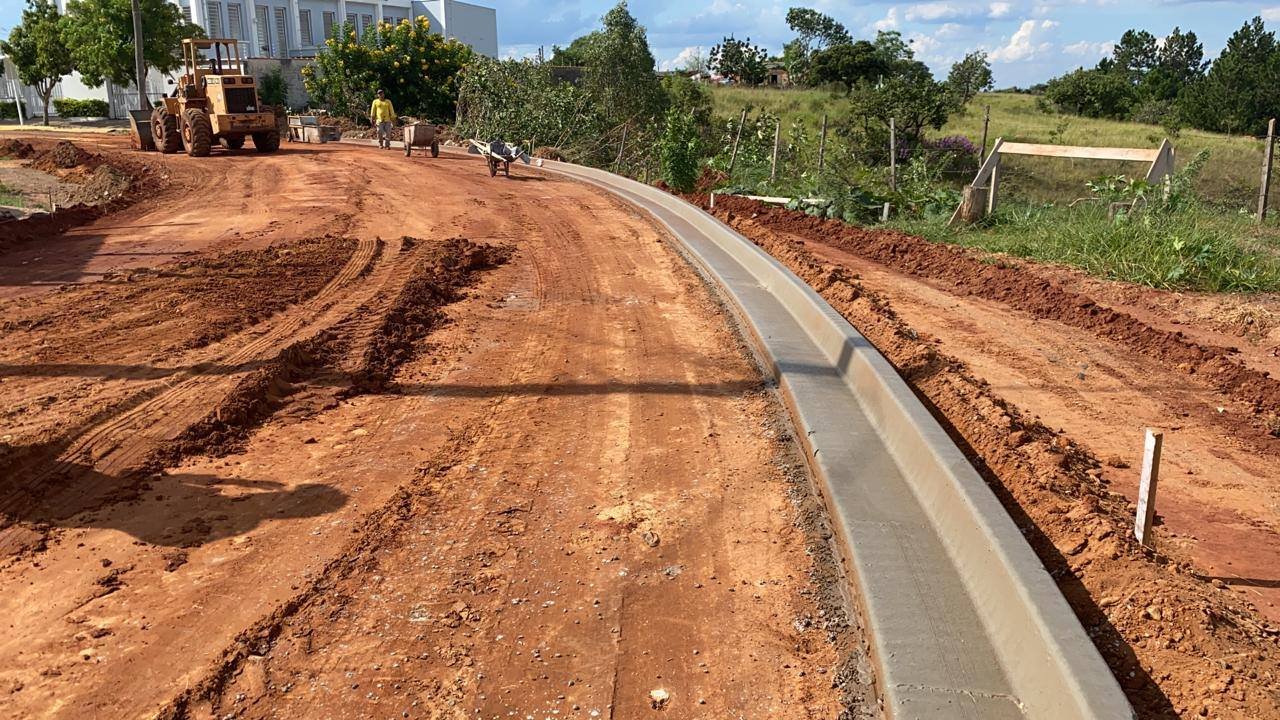 Máquinas das empresas responsáveis pelas obras já realizaram o serviço de terraplanagem. Agora, é a construção das guias e sarjetas que está sendo executada, e na sequência será a implantação da base e aplicação de massa asfáltica.