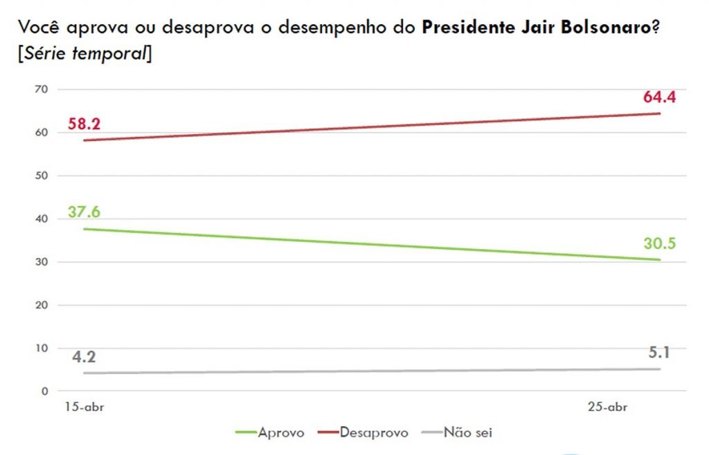 Pesquisa realizada pelo Atlas Político constata crescimento da rejeição ao presidente Jair Bolsonaro e identifica maioria favorável ao impeachment em todas as regiões. O levantamento foi feito entre sexta e domingo (24 a 26). Depois, portanto, da demissão do ex-ministro Sergio Moro. O percentual de desaprovação ao desempenho de Bolsonaro à frente do governo está em 64,4%, com crescimento de quase 6 pontos em relação a uma consulta feita 10 dias antes. No mesmo período, as aprovação caiu sete pontos, indo para 30,5%.