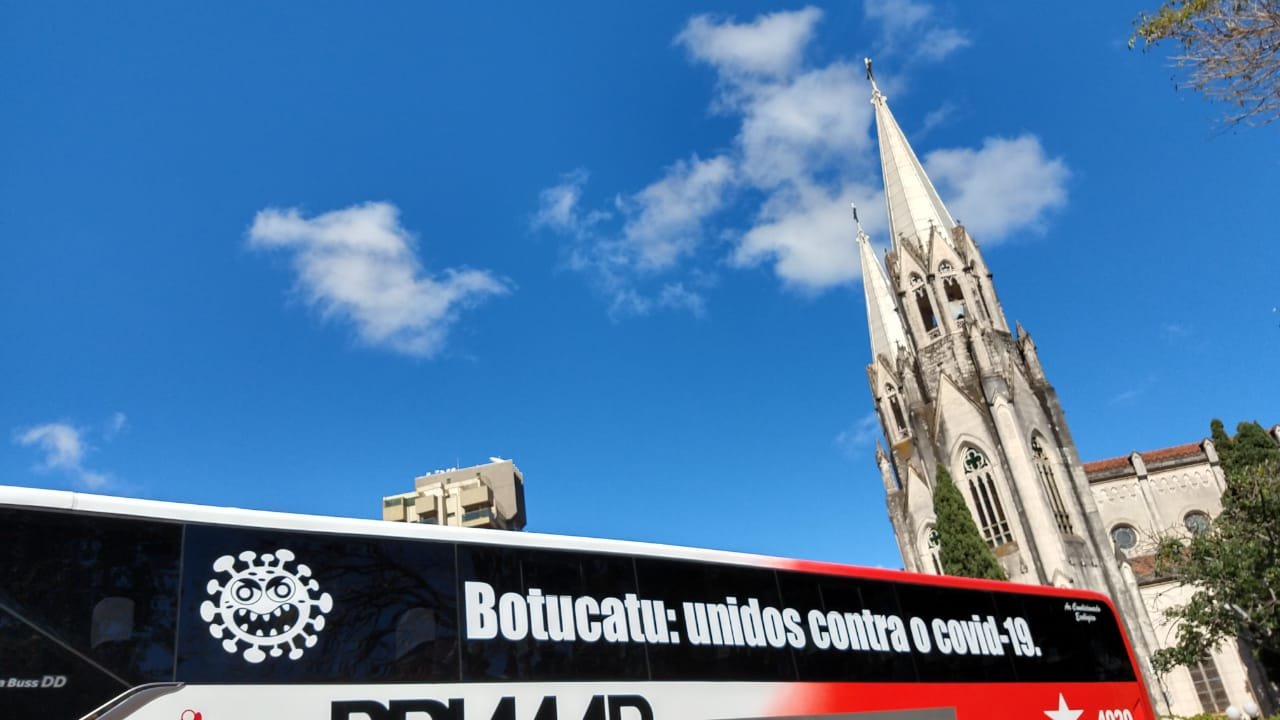 Máscaras gigantes em ônibus: ação visa conscientizar contra o coronavírus em Botucatu