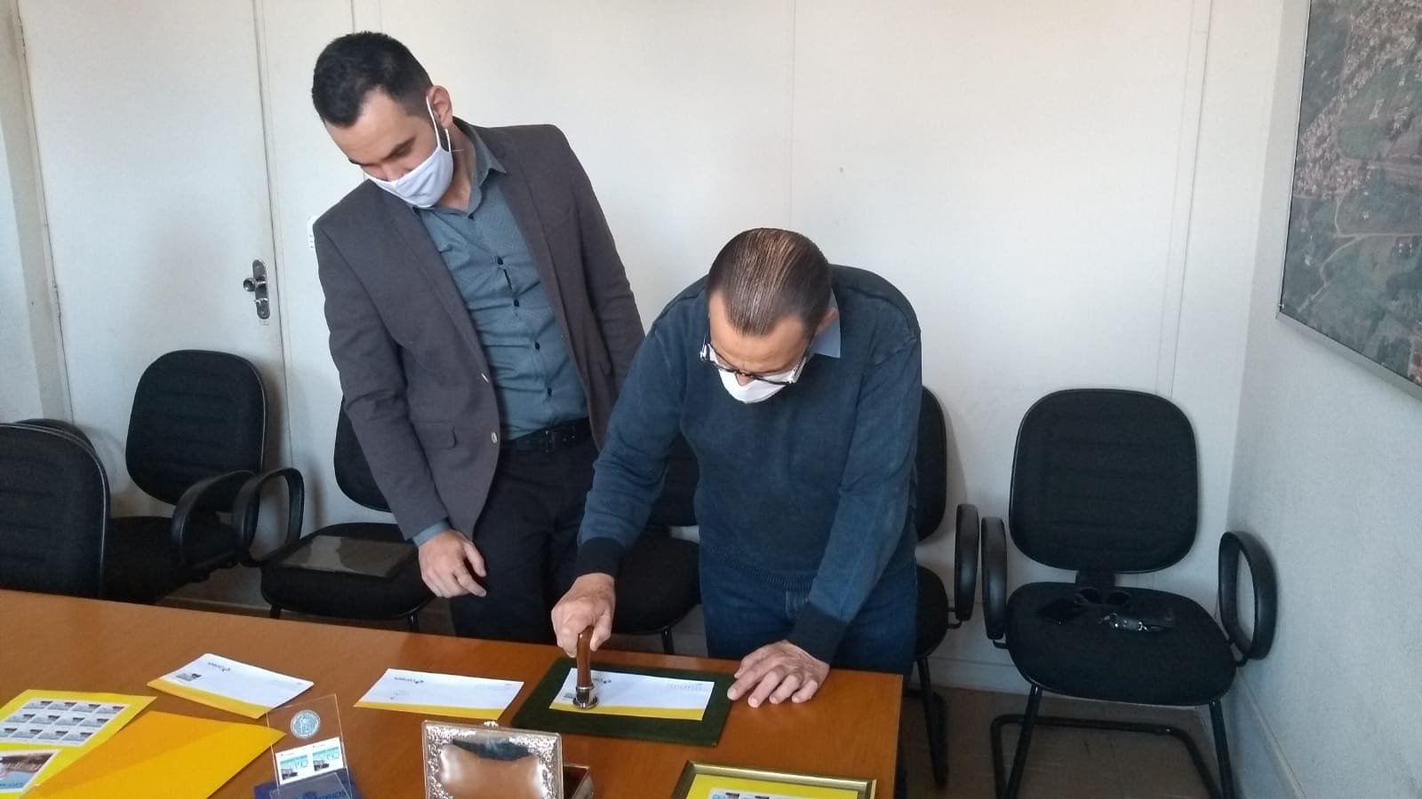 A arte da criação do selo foi realizada por Neto Jacoia, onde o selo será utilizado em todas correspondências postadas pela Prefeitura Municipal de 01/06 até 31/12/2020 e o carimbo utilizado nas chancelas das correspondências postadas na agência do correio local, no período de 01 a 30/6/2020.