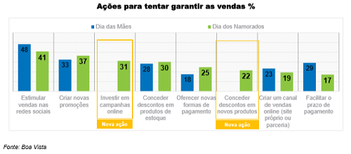 De acordo com a pesquisa da Boa Vista, 35% das MPMEs vão realizar alguma ação on-line para alavancar as vendas para o Dia dos Namorados, percentual menor em relação ao Dia das Mães (41%).