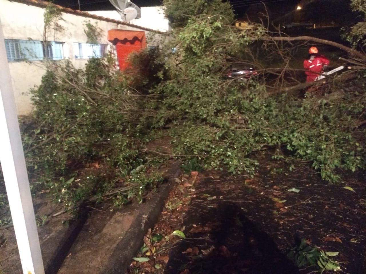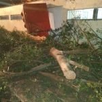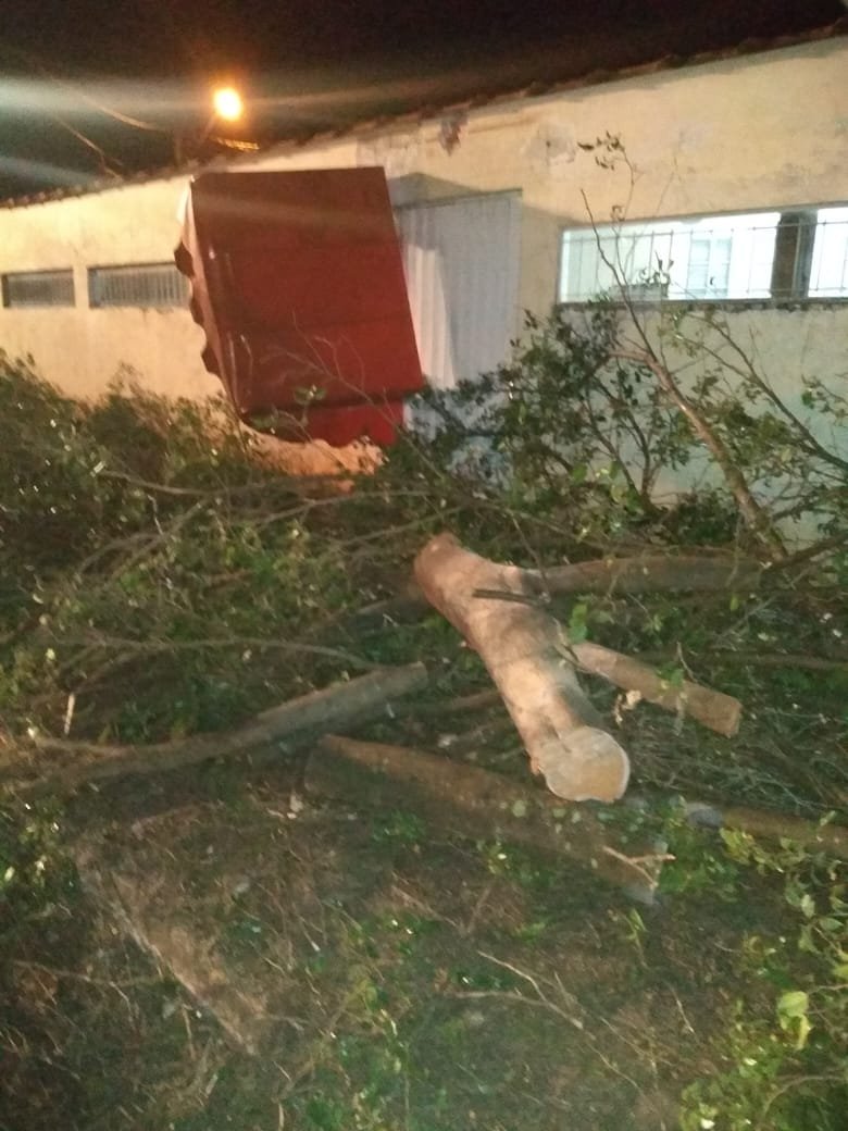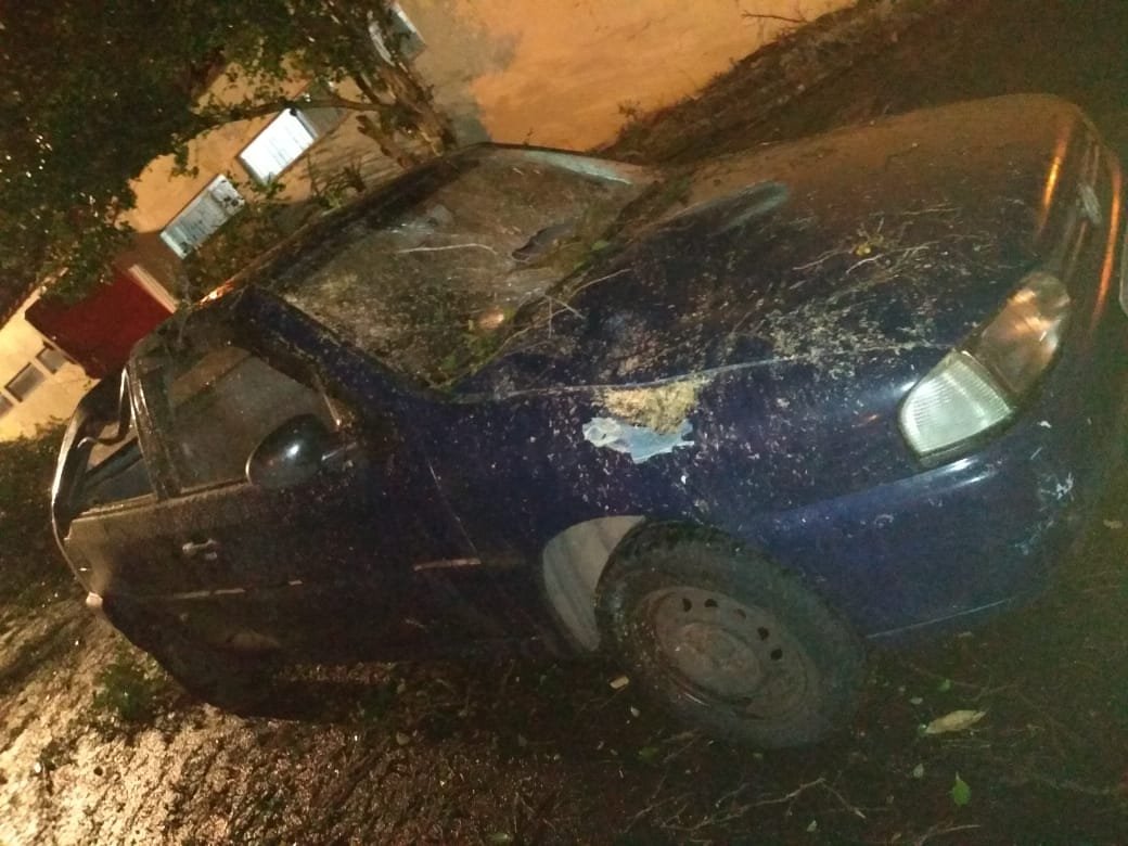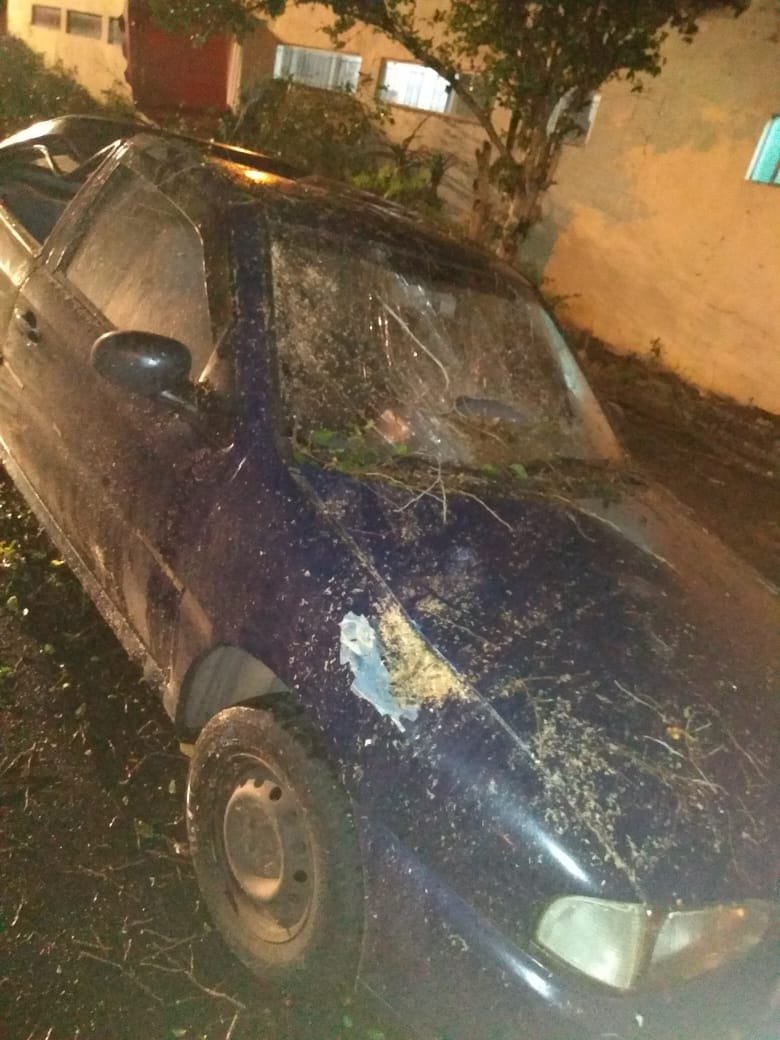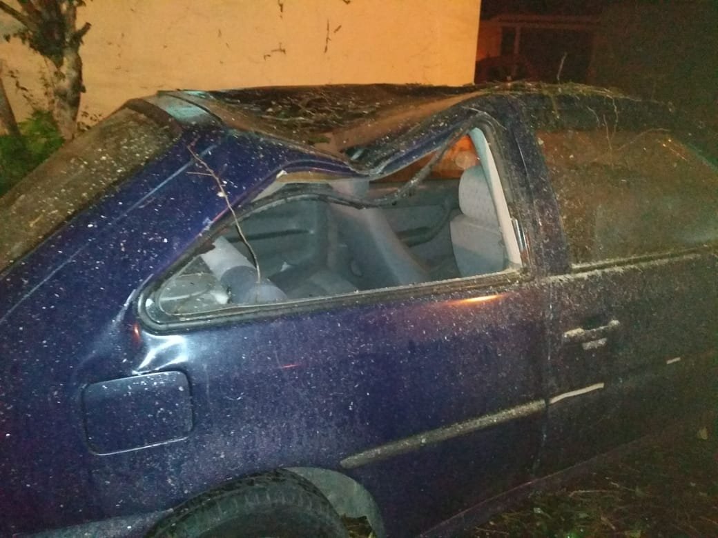 Devido ao vento, a árvore não aguentou e atingiu um Volkswagen Gol que teve o teto afundado e vidros quebrados. Apesar do impacto, não houve vítimas.