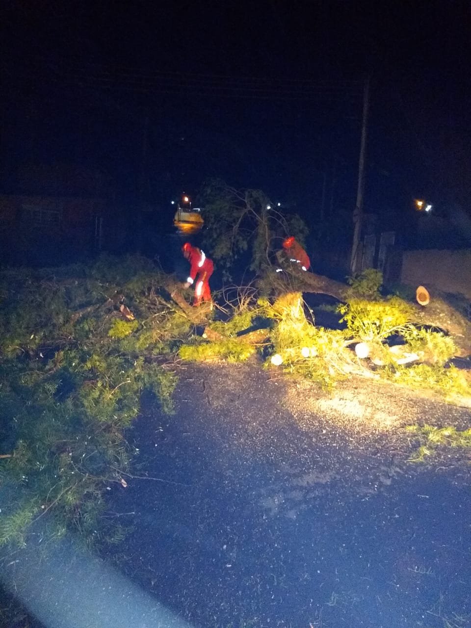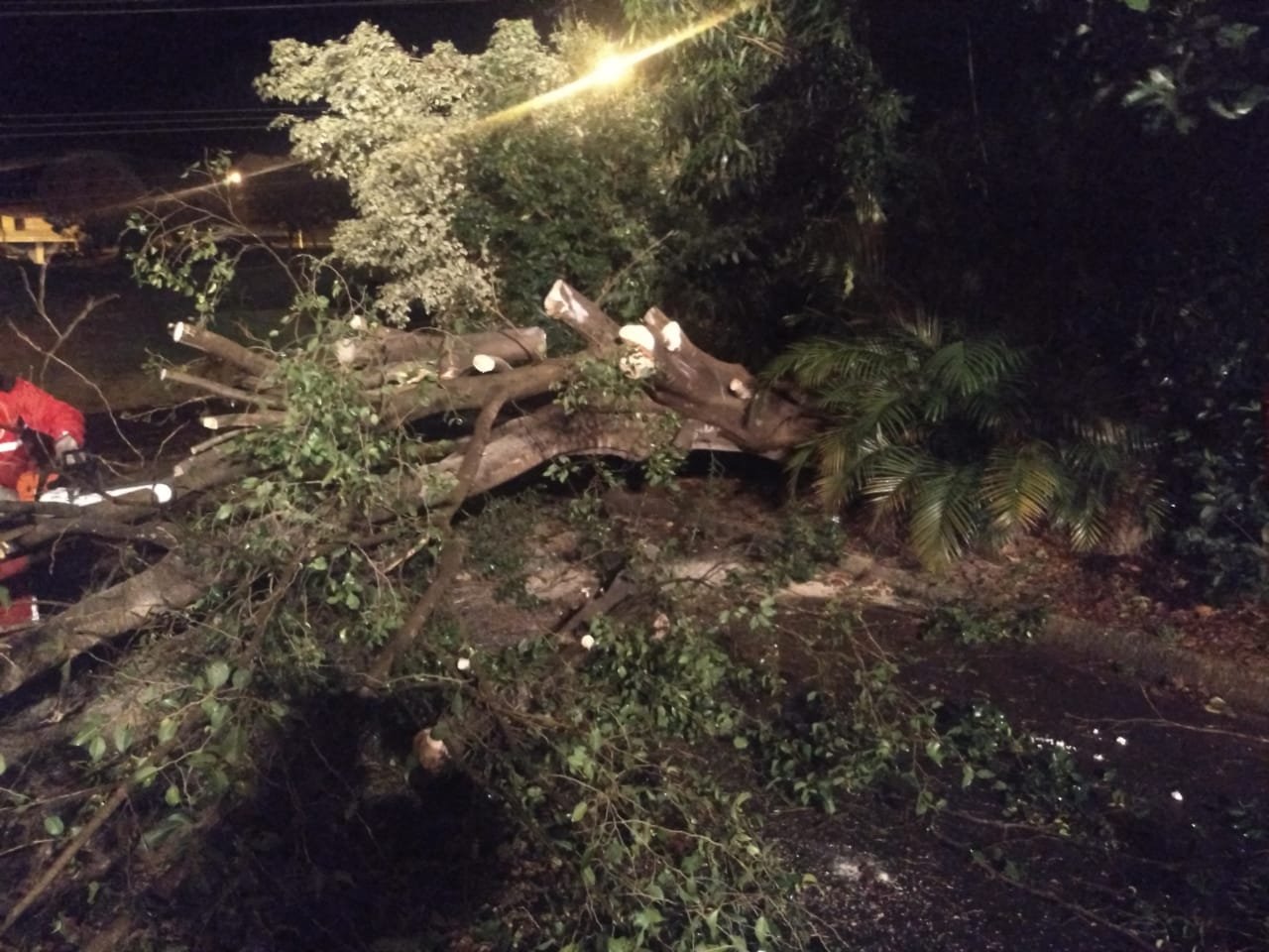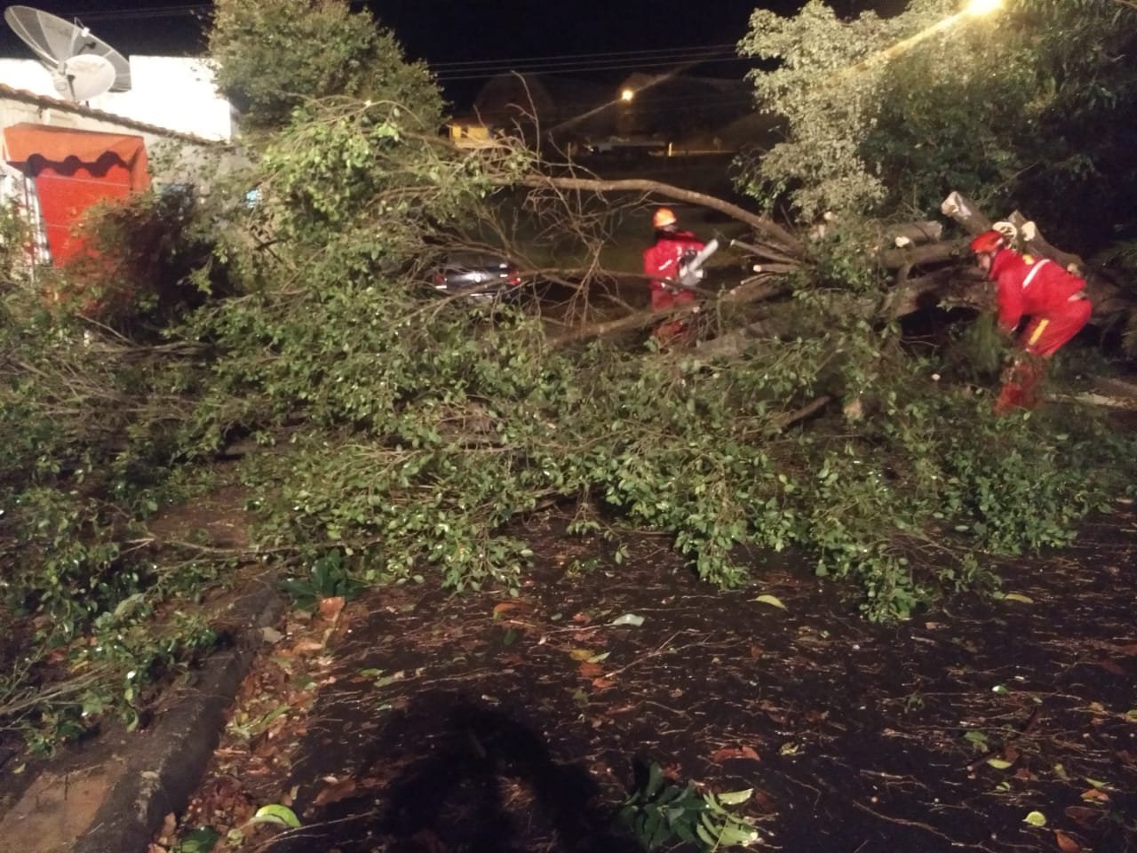 Devido ao vento, a árvore não aguentou e atingiu um Volkswagen Gol que teve o teto afundado e vidros quebrados. Apesar do impacto, não houve vítimas.