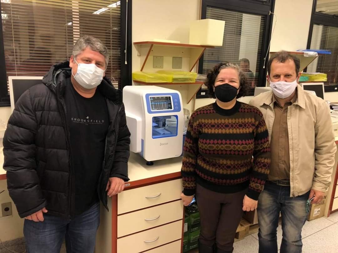 Foi entregue o aparelho comprado pelo Grupo Caio e que será capaz de fazer até mil testes diários de coronavirus ao dia. Segundo anunciado no sábado, 27 de junho, será possível analisar 90 testes a cada 40 minutos.