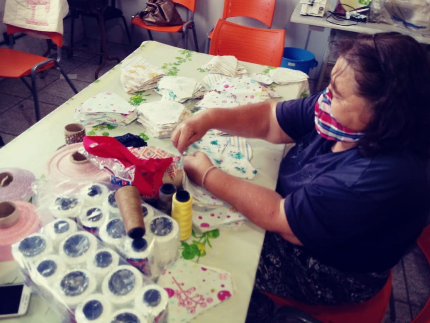 Além da doação de material, os artesãos contaram com apoio de empresas da Cidade, que cortou 90% dos tecidos usados pelas costureiras.