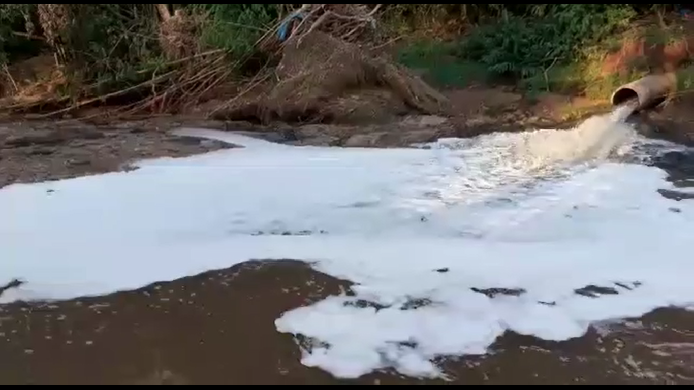 Defeito em bomba da Sabesp despeja esgoto no Ribeirão Lavapés, no Lageado