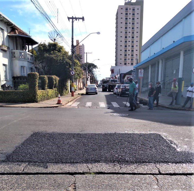 A Secretaria de Serviços também fez ajustes na rua situada ao lado do Instituto Médico Legal. Após o nivelamento do solo, que havia cedido devido à infiltração, servidores municipais recolocaram as lajotas no pavimento.