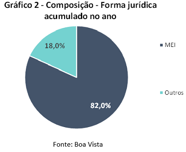 Já em termos de composição, as MEIs representaram 82% dos casos no semestre encerrado em junho. No mesmo intervalo de tempo do ano anterior a participação dessas empresas era um pouco menor, de 77,5%.