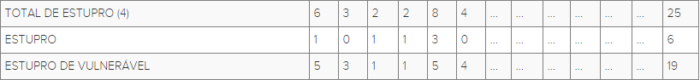 Maio foi o mês com o maior índice destes casos, sendo registrados oito estupros (5 cometidos contra vulnerável).