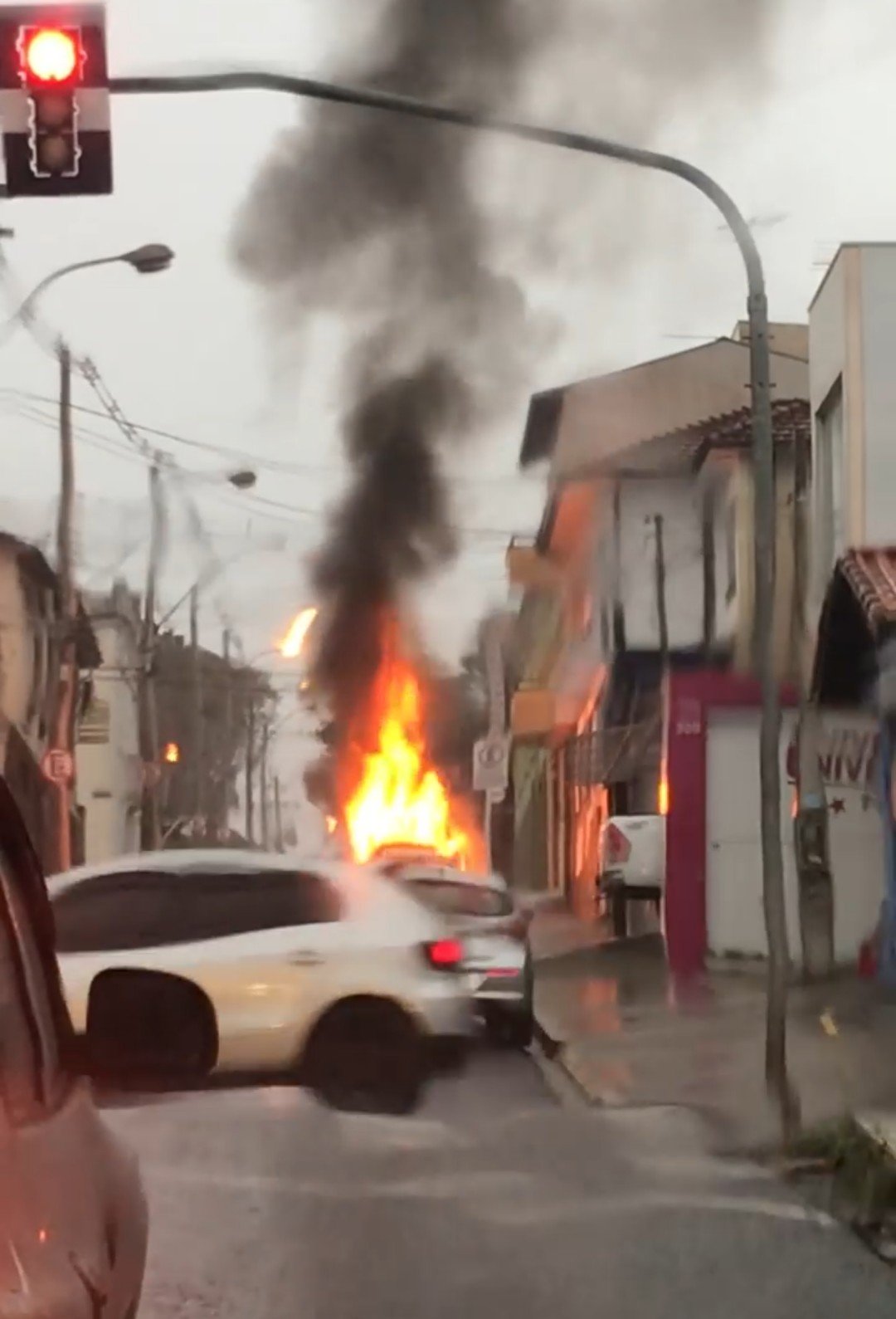 Um carro ficou destruído por causa de incêndio no final da tarde desta segunda-feira, 17 de agosto, em Botucatu.