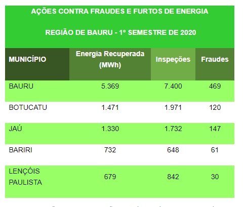 Botucatu foi a segunda cidade com maior incidência de furto de energia elétrica no primeiro semestre deste ano, segundo levantamento da CPFL Energia. Foram registradas 120 fraudes em clientes residenciais e comerciais da empresa concessionária de energia elétrica.