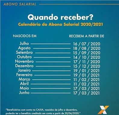 A consulta do direito ao benefício, bem como do valor disponibilizado, pode ser realizada por meio do app CAIXA Trabalhador, pelo atendimento CAIXA ao Cidadão – 0800 726 0207 e no site http://www.caixa.gov.br/abonosalarial/.