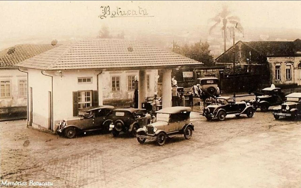 Antigo posto de combustíveis onde atualmente é o Terminal do Paratodos. Ao fundo, a casa onde residiam os capuchinhos.