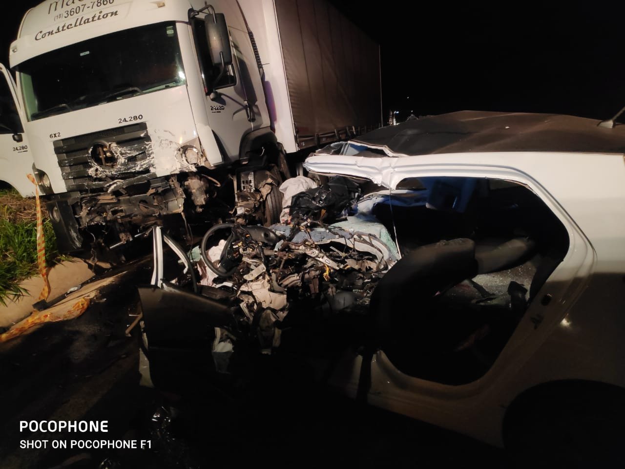 A colisão matou instantaneamente o condutor, que sofreu múltiplas fraturas, lesão de tórax e crânio. Já o motorista do caminhão não sofreu ferimentos.