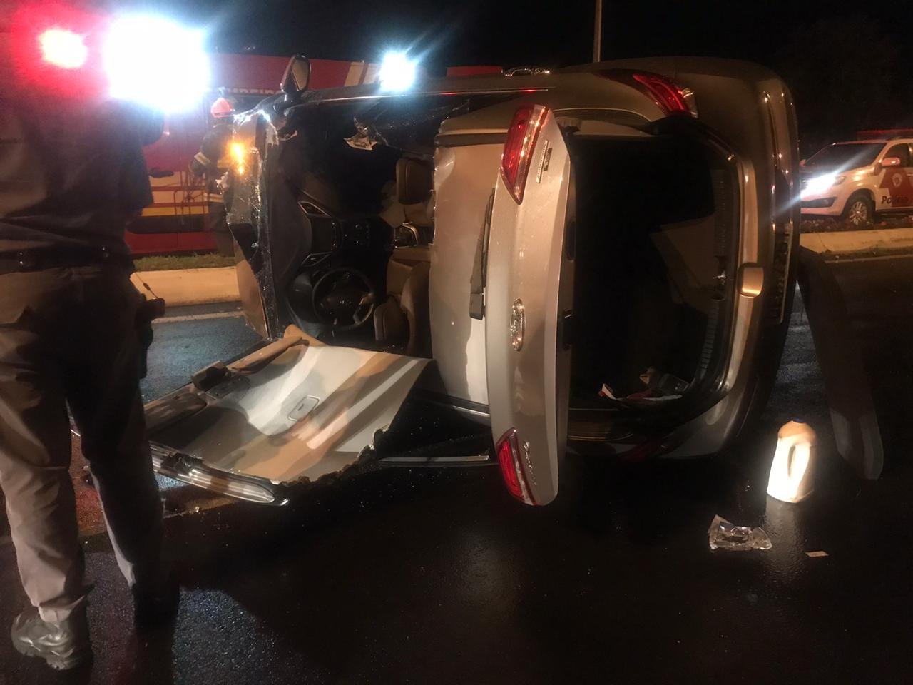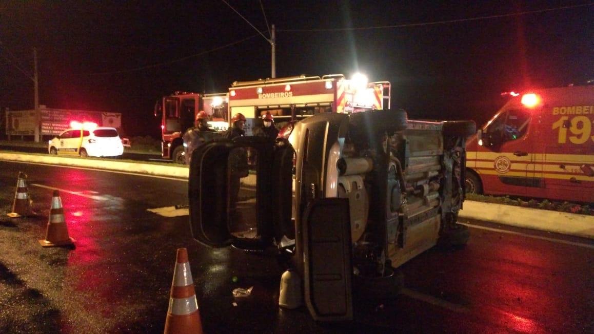 Uma mulher ficou ferida após um capotamento na noite desta quinta-feira, 03, na saída do campus da Unesp, em Rubião Júnior, em Botucatu.